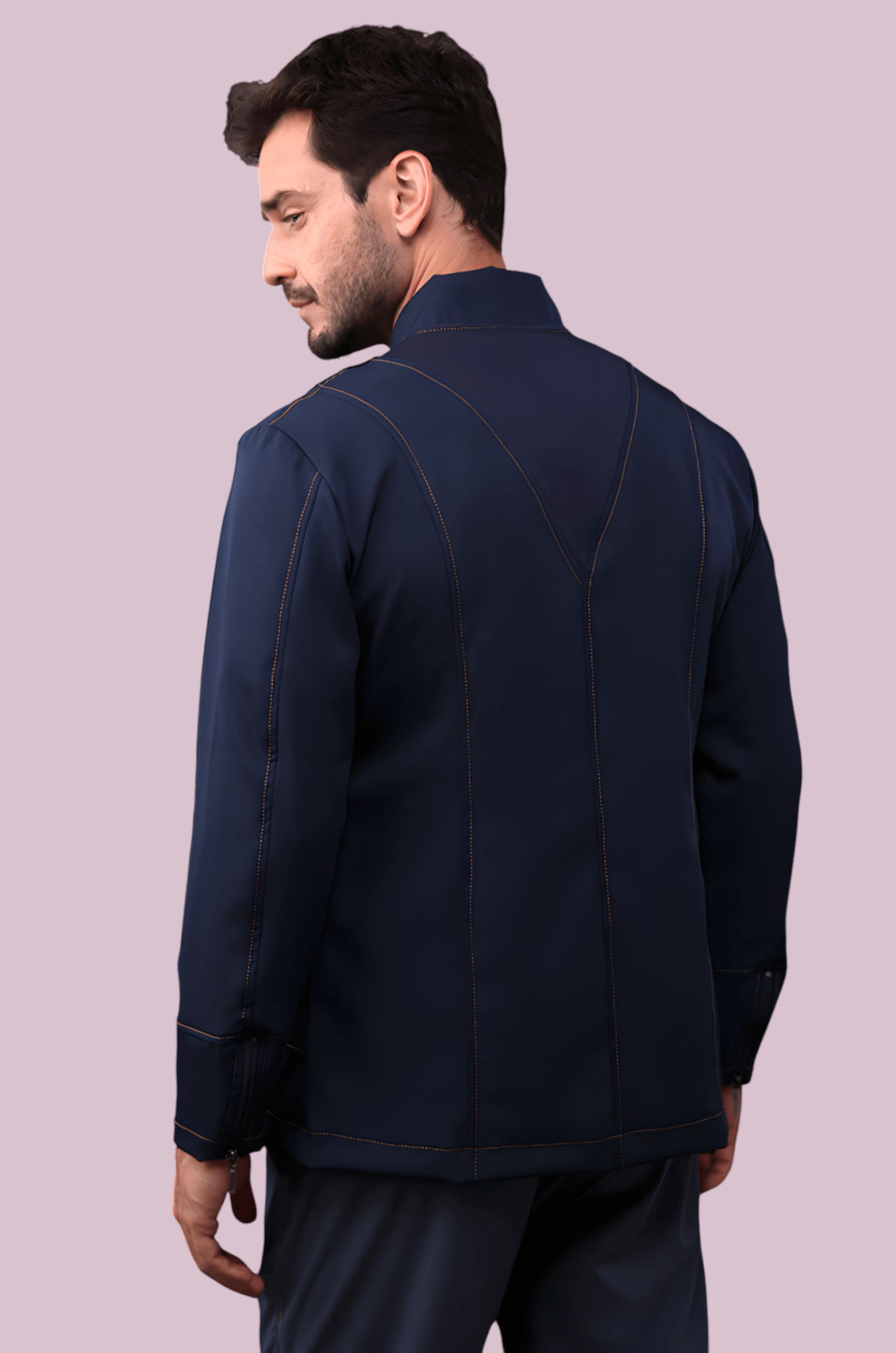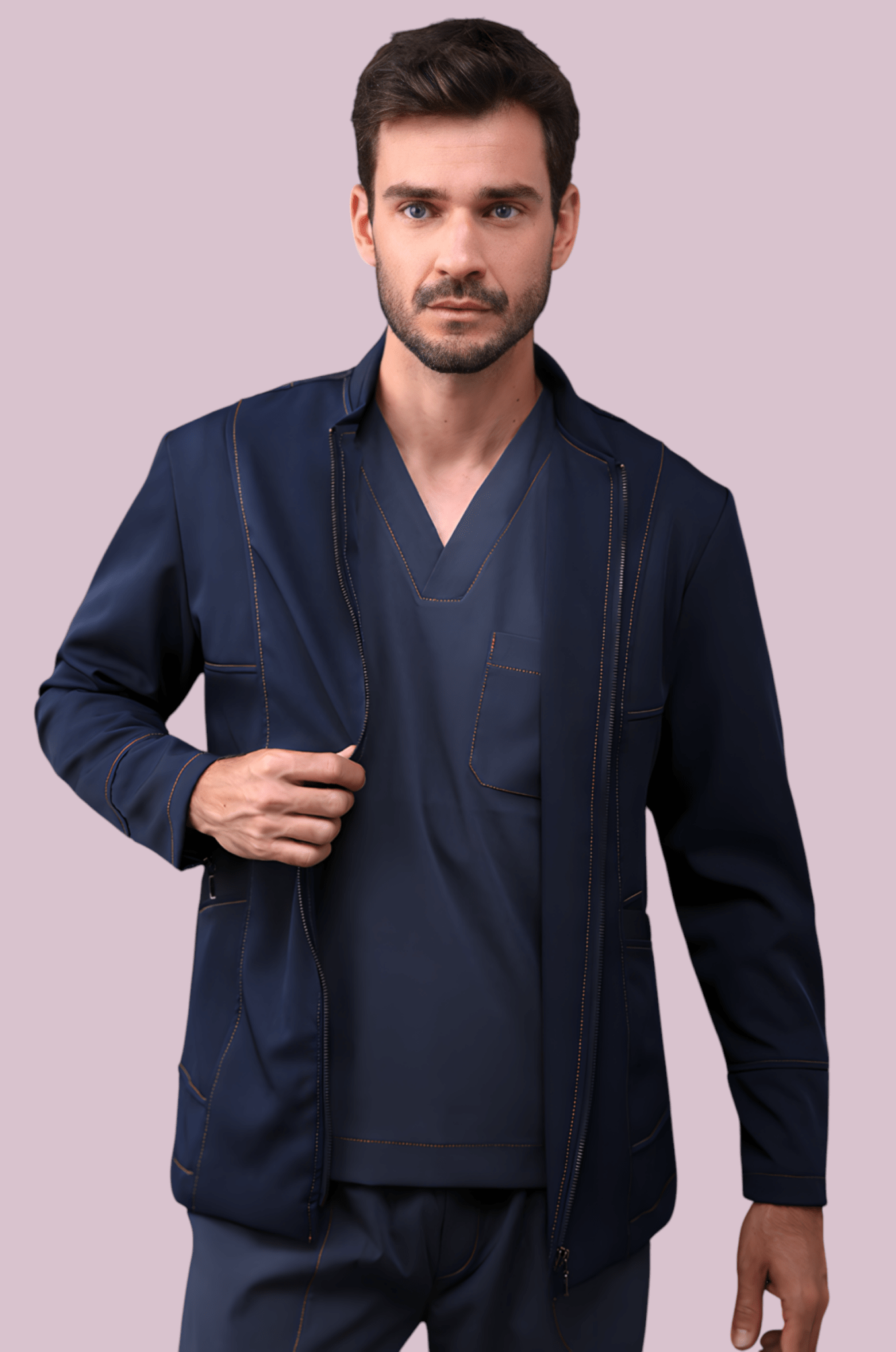 Ergonômica, contemporânea e excepcionalmente confortável, a Jaqueta Vox foi criada para profissionais que precisam de mobilidade sem abrir mão da elegância. Seus painéis de contorno estrategicamente posicionados ampliam a liberdade de movimento durante os procedimentos diários, enquanto a combinação de microfibra com elastano e mangas em neoprene oferece flexibilidade, sustentação e um toque premium.