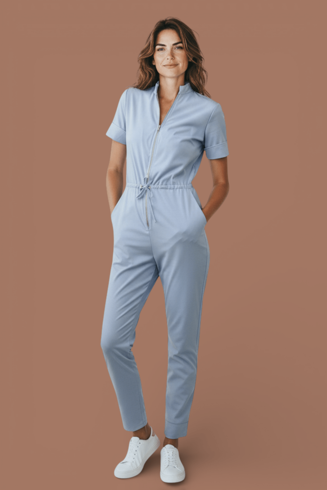 Pensado como uma alternativa sofisticada aos scrubs femininos tradicionais, o Macacão Frida combina praticidade com um estilo moderno que só a HOLI consegue entregar. Sua silhueta slim e alfaiatada, com pernas levemente afuniladas, cria um visual alongado e elegante, enquanto as mangas curtas trazem leveza e frescor sem perder a sofisticação.
