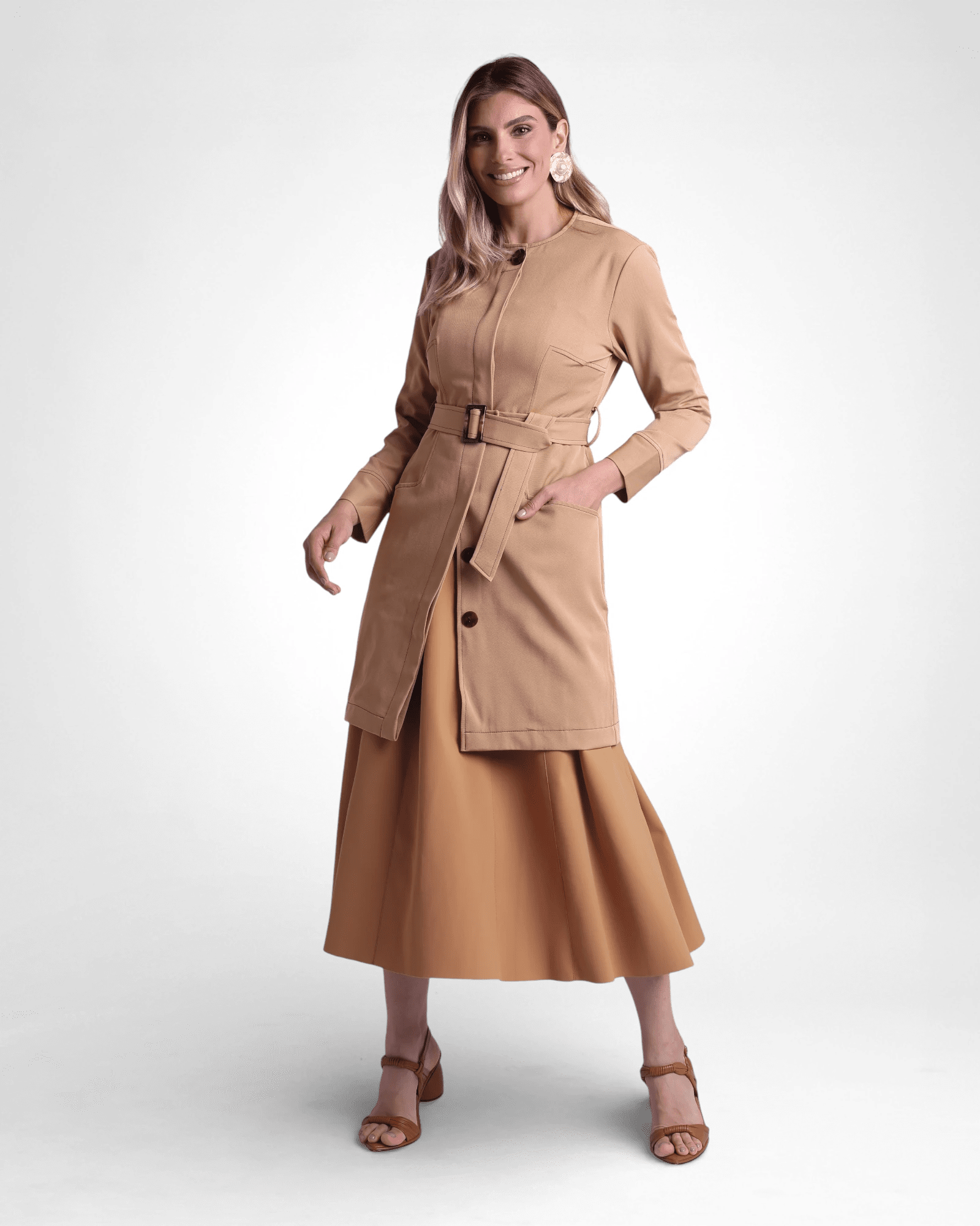 • Silhueta feminina e elegante, que valoriza a cintura com equilíbrio.
