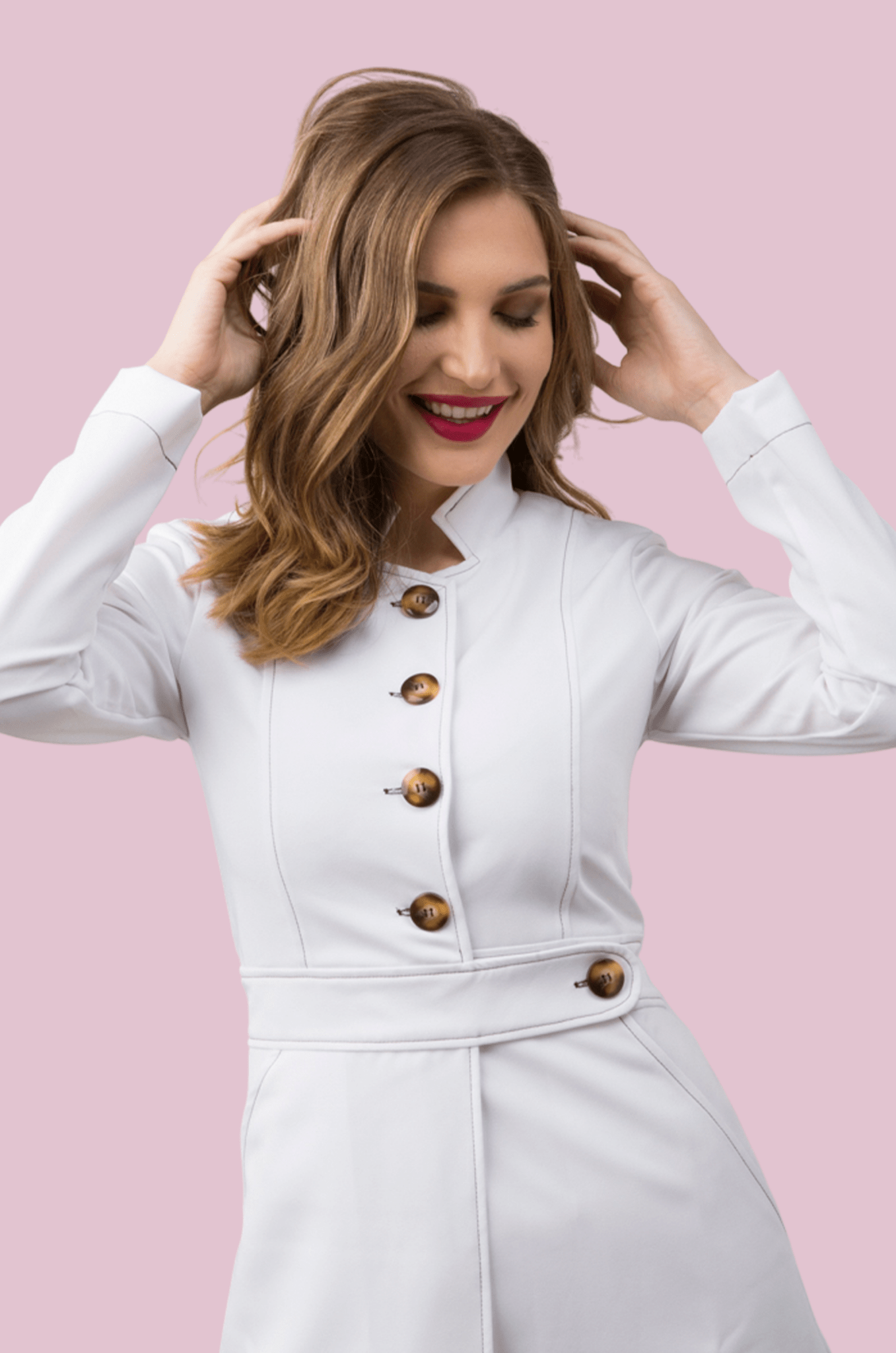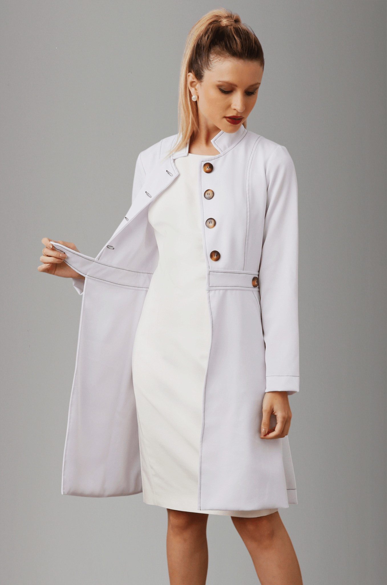 Criada para mulheres que não seguem tendências — elas as criam. Com sua cintura perfeitamente estruturada e silhueta inspirada em vestido, o Jaleco Paola traz elegância e feminilidade para o dia a dia profissional. Sofisticado, exclusivo e inconfundivelmente chic, é a escolha ideal para quem deseja se destacar com estilo e confiança.