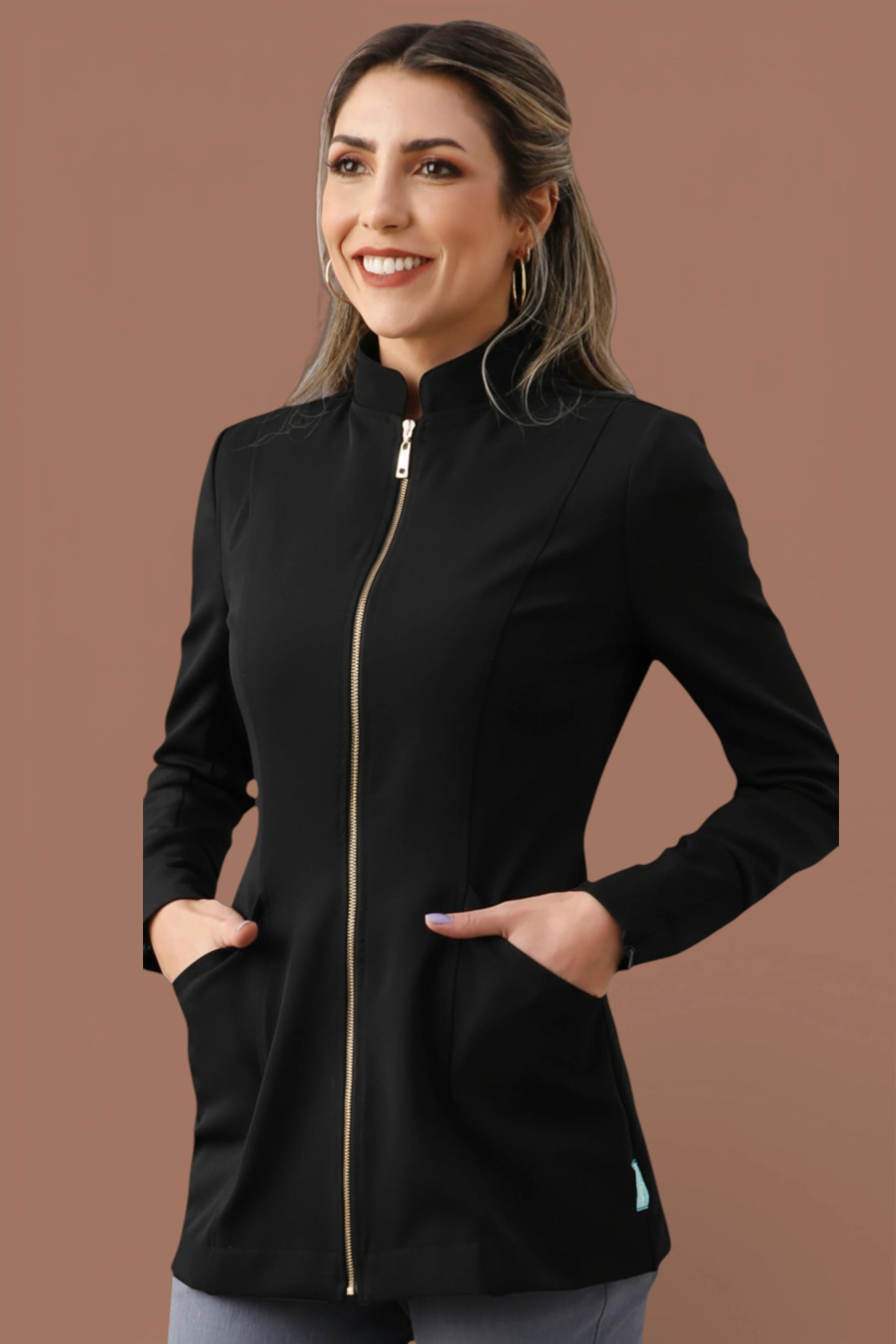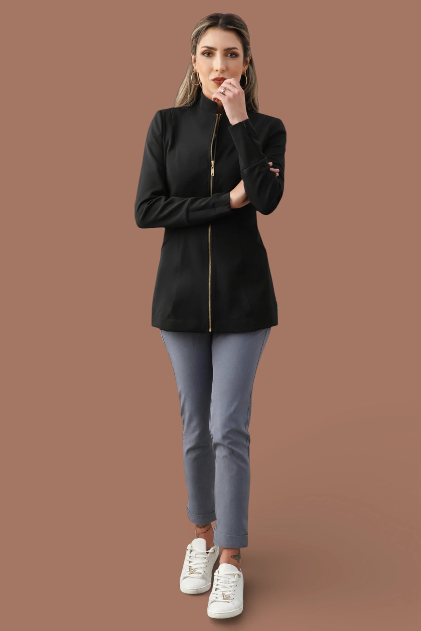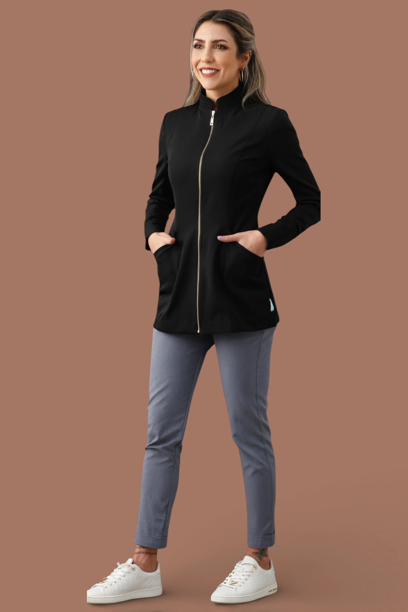 Assim como todas as criações da HOLI, a Jaqueta Débora carrega uma história e homenageia profissionais incríveis que fazem parte da nossa trajetória. Cada peça é confeccionada artesanalmente, com cuidado, precisão e atenção aos detalhes — feita especialmente para acompanhar você em alta performance todos os dias.